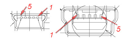 1、VBUS;2、D-;3、D+;4、ID;5、GND