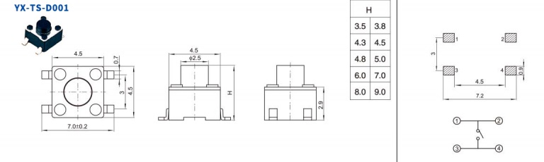 四脚按键开关的款式有很多,我们下面列举2款比较经典的款式。