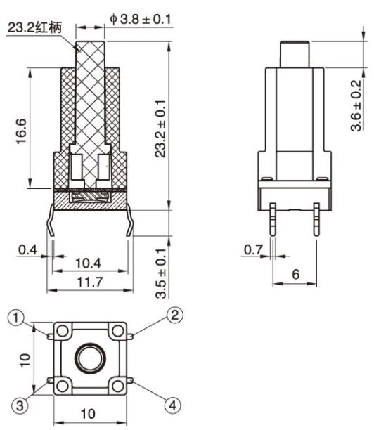 10*10高盖红柄插件防水轻触开关电路图