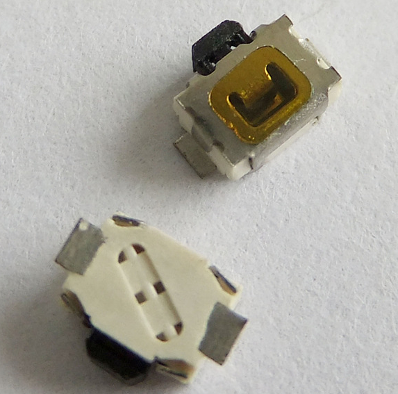 轻触开关由嵌件、底座、弹片、按钮和盖板组成。防水轻触开关在弹片上加一层聚酰亚胺膜。