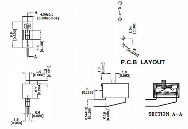 2. 开关不经常切换额定电流: 100mA, 耐压SOVDC。