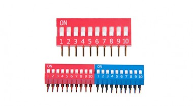 (3)指拨开关:拨码开关体积小巧,可通过手指直接拨动操作,因此也被称为指拨开关。