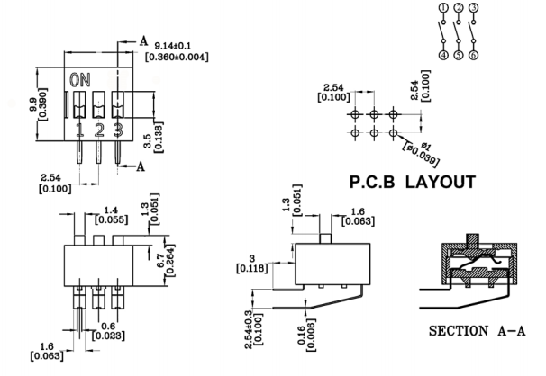 2. 开关不经常切换额定电流: 100mA, 耐压SOVDC。