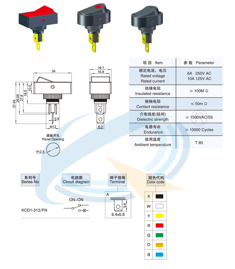 KCD1-313-FN船型开关厂家批发价格:2~3元/个;额定电流、电压:6A 250v AC/10A 125V AC;
