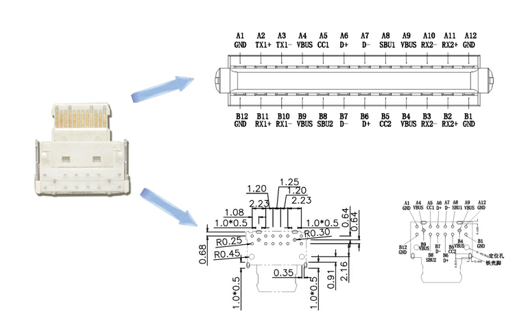 苹果USB-C(USB Type-C)充电器母座厂家批发价格:0.9~1.2元;