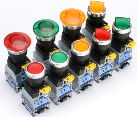 自持按钮:按钮内装有自持用电磁机构,主要用于发电厂、变电站或试验设备中,操作人员互通信号及发出指令等,一般为面板操作。代号为Z。