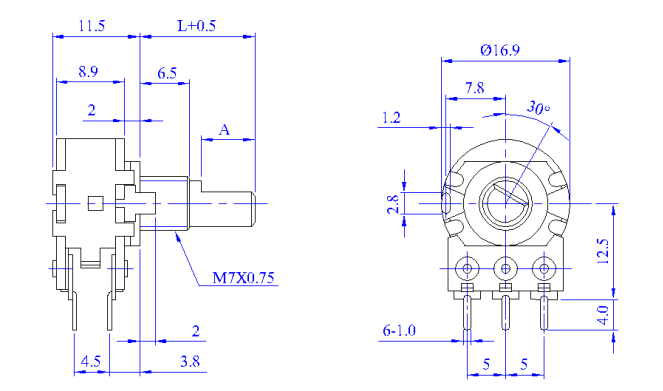 五脚开关电位器厂家批发价格:0.7~0.8元/个;