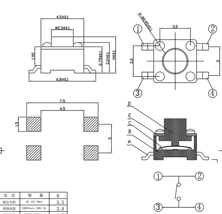 4*4轻触开关的接线图