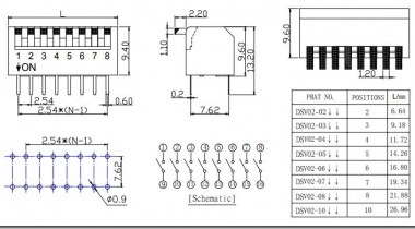 DA-02侧插拨码开关厂家批发价格:0.62~1.12元/个DA-02侧插拨码开关参数额定负荷:切换电流是25mA,24V DC...